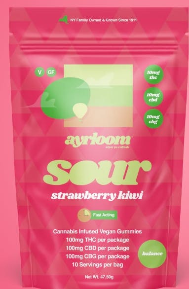 Ayrloom | Sour Strawberry kiwi | UP | 100mg Edibles | 1:1:1 THC+CBD+CBG